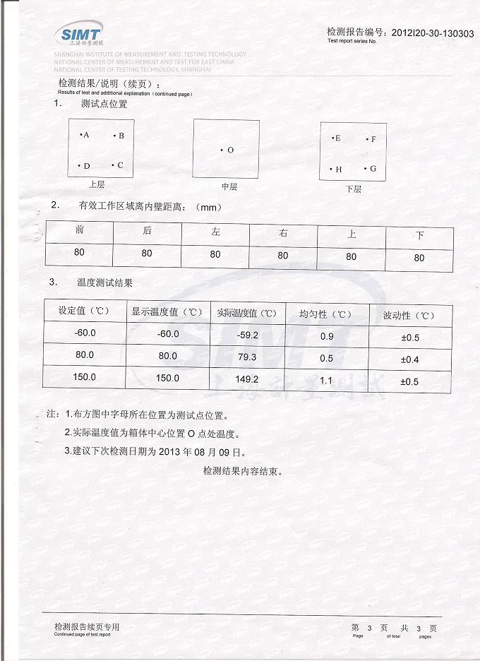 >>高低溫試驗箱檢測報告-上海計量院-勝利油田