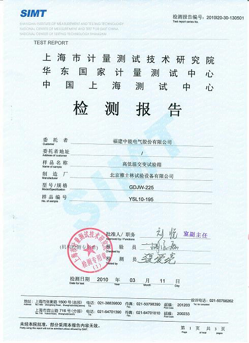 >>高低溫交變?cè)囼?yàn)箱檢測(cè)報(bào)告-上海計(jì)量院-中能電氣