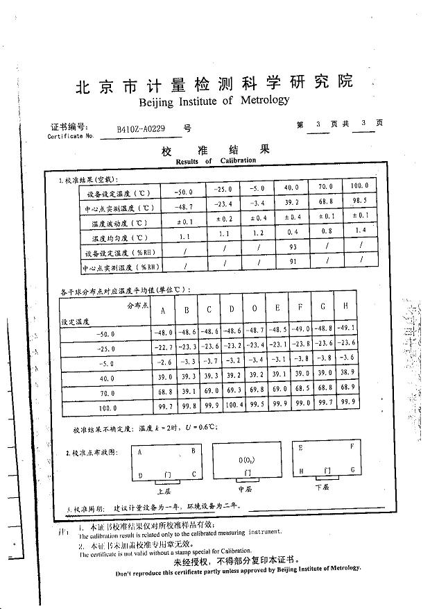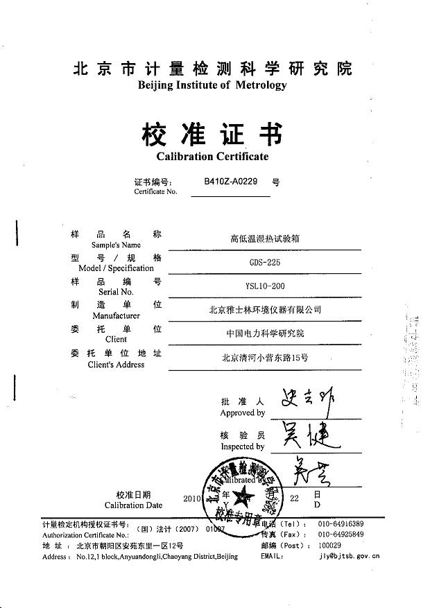 高低溫濕熱試驗(yàn)箱校準(zhǔn)證書-北京計(jì)量院-中國(guó)電科院1