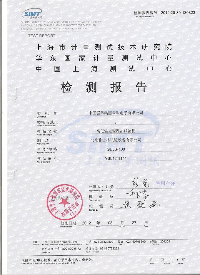 >>高低溫交變濕熱試驗(yàn)箱檢測報(bào)告-上海計(jì)量院-振華集團(tuán)