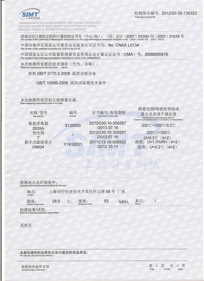·高低溫交變濕熱試驗(yàn)箱檢測報(bào)告-上海計(jì)量院-振華集團(tuán)