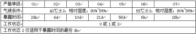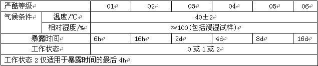 條件試驗13方法:凝露(下圖為條件試驗方法13凝露的嚴酷等級表)