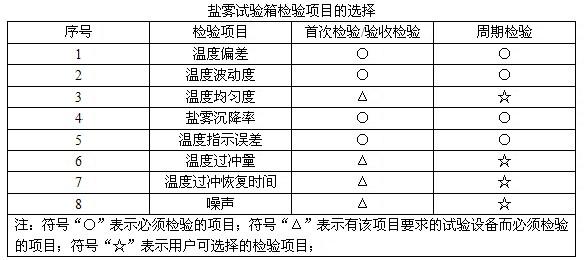 鹽霧試驗箱首次檢驗/驗收檢驗和周期檢驗時,若無其他規定,按下表選擇檢驗項目。