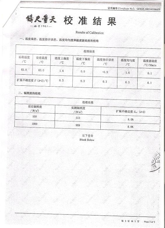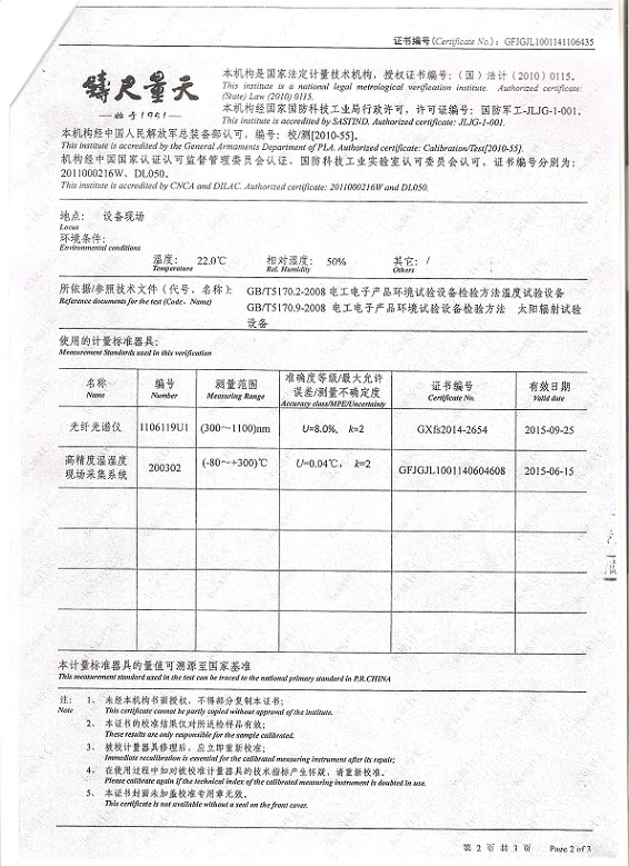 ·氙燈老化試驗箱校準證書模板下載—北京長城計量所