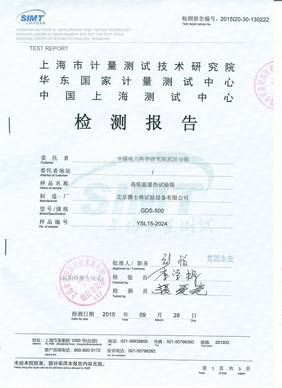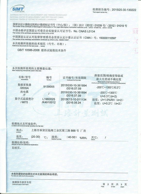 高低溫濕熱試驗箱檢測報告模板下載--上海計量院