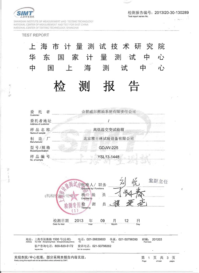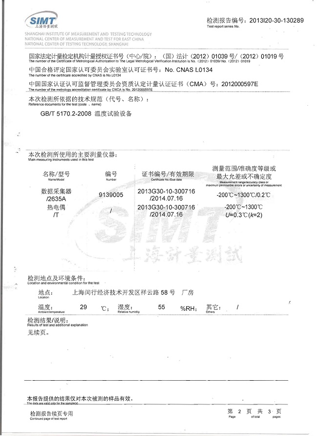 ·高低溫交變試驗箱檢測報告模板下載--上海計量院
